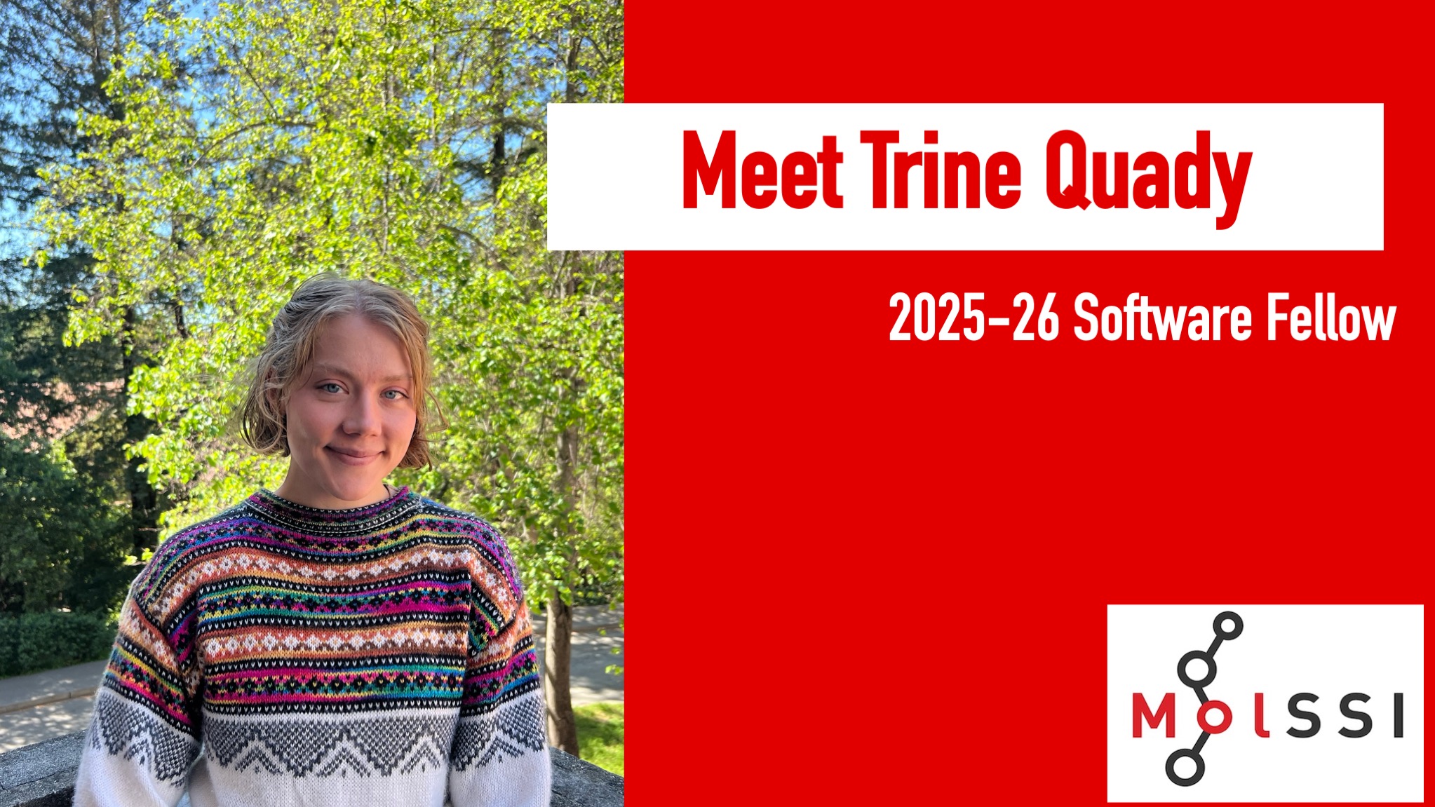 The MolSSI Software Fellowship has proven to be a transformative experience for Trine, enriching her understanding of software sciences. The collaborative environment allows her to engage in meaningful conversations with her fellow software fellows, often starting from familiar ground and evolving into comprehensive discussions about software practices and hardware specifics. This supportive community has made tackling research challenges feel more achievable, providing invaluable guidance along the way.